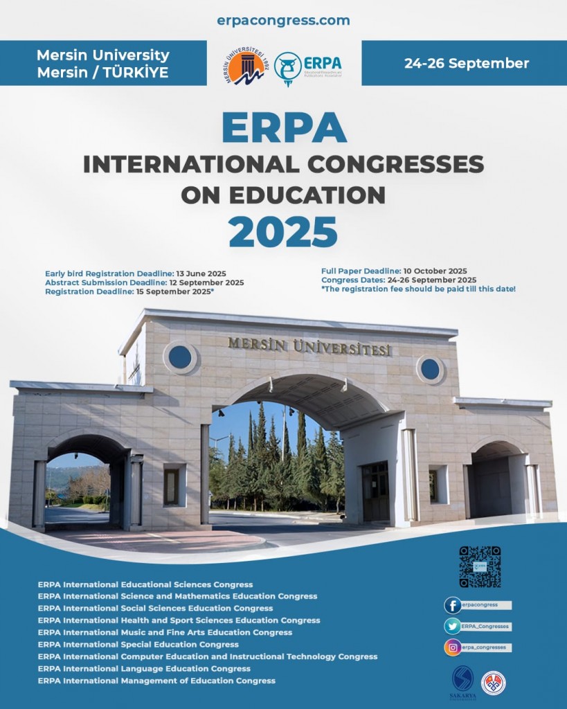 ERPA Uluslararası Eğitim Kongreleri’nin 2025 buluşması, 24-26 Eylül 2025 tarihleri arasında Mersin Üniversitesi ev sahipliğinde gerçekleştirilecektir. Eğitim bilimleri alanında uluslararası düzeyde bilgi paylaşım